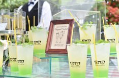 結婚式のテーマに合わせてロゴ作りから始めたおふたり。 オリジナルのロゴ付きプラカップ! ロゴはテーマのひとつであるメガネとおふたりのイニシャルの組み合わせで出来ています。 ロゴはお料理にも!事前におふたりが作られた焼印が入れられました。 お見送りの際のプチギフトは、ご新婦様の好きなトトロの世界観をイメージしたアップルジュース。 ゲストの席札からデザートまで統一感のあるパーティとなりました!