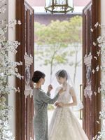 ご家族との絆を大切にしたいお二人にはベールダウンセレモニーがおすすめ。ご入場後、お母様と向かい合い、お母様には子育てに幕を下ろし幸せになってほしいという願いこめてベールを下ろしていただきます。花嫁様の最後のご準備をお母様に整えていただいた後は、真紅のバージンロードをお父様と腕を組み歩んで下さい。