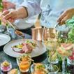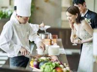 コースは和フレンチorフレンチから選択可能。披露宴の始まりは貸切シェフがおふたりとゲストをお出迎えします。ゲストの前で仕上げる料理で大切なゲストをもてなしができると好評。コースを締めくくるデザートはサービススタッフがワゴンで提供。