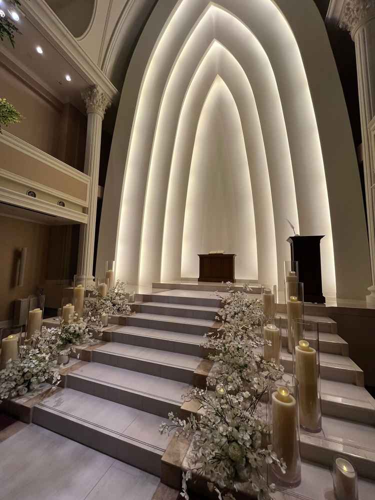 お城のような外観、洗練されたデザインのチャペル。スタッフさんも全員対応が良く、一体感があり、とても素敵な雰囲気だった。