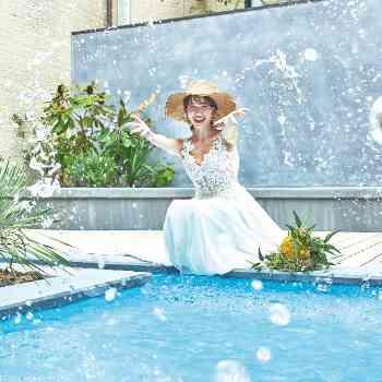 - プール付きのプライベートガーデンとの行き来が自由で演出の幅が広がる。