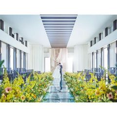 【初見学当日のご成約でご優待あり】白が基調で大きなシャンデリアが特徴的なプール付き披露宴会場、ガーデンテラスとの行き来が自由で2階まで吹き抜けの解放感あふれる披露宴会場。2つの会場をじっくり見学して♪