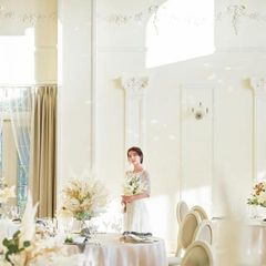 【初見学当日のご成約でご優待あり】白が基調で大きなシャンデリアが特徴的なプール付き披露宴会場、ガーデンテラスとの行き来が自由で2階まで吹き抜けの解放感あふれる披露宴会場。2つの会場をじっくり見学して♪
