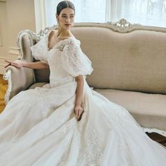 敷地内にあるドレスショップを見学。和装からドレスまで多数の人気ブランドを取り揃えております。実際に手に触れ、試着をすることでドレスの質感や小物もチェック♪当日をイメージしたり花嫁気分を味わって♪