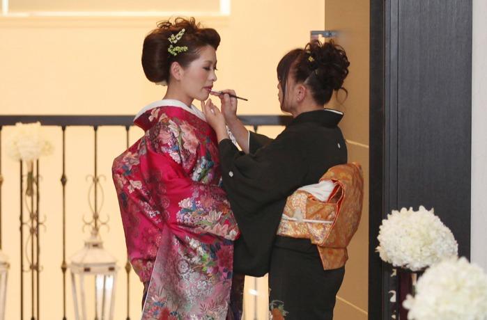 ふたりの結婚式は和装人前式。お母様からのベールダウンに代わる「紅さし」の儀式は、お母様も花嫁も涙なくしては出来ませんでした。その後はお父様と一歩一歩進まれました。挙式の中では「和」にちなんだ演出がたくさん。中でも両家が作られているお米を使用した「米合わせの儀」はとても神聖な気持ちに。ご両家ご両親には「子育て卒業証書」も贈呈されました。