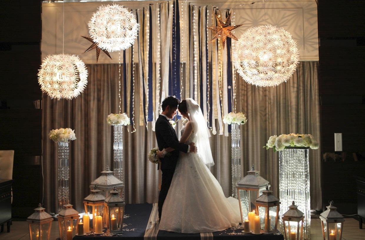 ふたりのお付き合いがスタートした花火大会の夏の空は、満開の花火できらきら輝いていました。そしてふたりの人生もきらきら輝く人生にしたい…そんな思いでコンセプトを決定。夏の夜空、満開の花火、これからの輝く未来をイメージした会場つくり、進行をご提案しました。