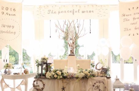 列席いただくゲストには、「ありがとう」という気持ちと「ほっこり感」が伝わるあったかい、ゆったりとしたパーティーにしたいというのが二人のご希望。 そこで、夏になれば思い出してもらえるよう、おふたりの思い出の季節である夏のウェディングにちなみ、サマーマリンテイストなウェディングをご提案。マリンテイストなアイテムをちりばめ、おふたりの大好きなハンドメイドも交えました。