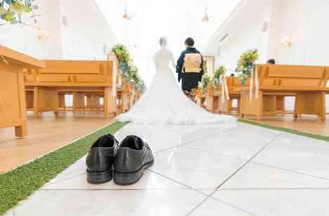 結婚式当日に花嫁姿を見せたかったお父様。その願いは叶わなかったけど、前撮りの際にご自宅でその姿を見て頂くことが出来ました。当日はきっとそばで見ていてくれる。お母さまと新婦様の後ろにはお父様が。無事に新郎様のもとまでふたりが進めるように。そしてお母様から新郎様へ新婦様を託されるまで温かく見守っていてくださったと思います。