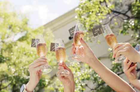 式場の見学にお越しになられた時からフェリーチェのガーデンをとても気に入っておられたおふたり。ゲストの皆様にもこのガーデンでの時間をたくさん過ごしていただきたいと思っておられました。受付を通られたゲストはガーデンで楽しんでいただけるようおふたりの写真をガーランドにして飾ったり、フォトブースを設置したり。また乾杯もガーデンで♪エスコートカードを添えたオシャレなグラスがとても好評でした♪
