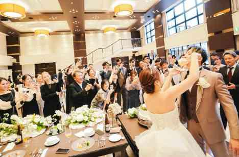 緊張感でいっぱいの結婚式の後は、リラックスして披露宴を♪おふたりのそばにはいつも笑顔でカメラを構えるゲストや、笑顔で拍手をしてくださるゲストの皆様が集まられます。会場の後方のお席が空席になるくらい、ほとんどのゲストの皆様がおふたりのそばまで集まってくださる様子は、おふたりが皆様に愛され思われている証だと思います。