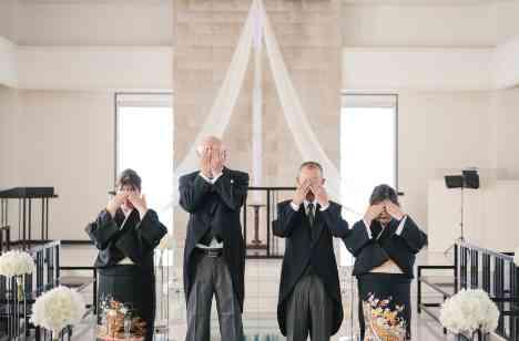 おふたりにとってご招待されたゲストの皆様は全員が感謝を伝えたい方々。そしてその中でも親御様にはもちろん一番感謝を伝えたい!だからこそ挙式前にきちんと伝える家族だけの時間を。チャペルの中で目隠しをしておふたりをお待ちになる親御様のご様子がなんだかとても微笑ましい1枚です。大切に育ててこられた我が子の晴れ姿を一番に見ることが出来る幸せを噛みしめて頂ける、おふたりからの素敵なお時間のプレゼントです。