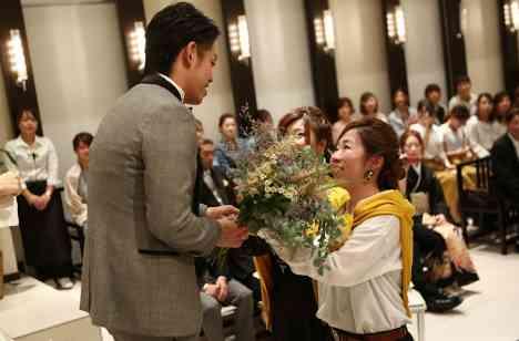 それぞれの思いや言葉の意味が込められたバラをゲストから贈って頂きブーケにするセレモニー。自然が好きなふたりらしく今回はバラではなく、様々な草花を使いました。一つ一つの言葉の意味に、おふたりからの感謝のメッセージを添えて。