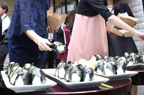 オリジナルBOXを作ってブッフェタイムを演出。返信ハガキで集計をしたおにぎりの好きな具材ベスト5やお弁当のおかずを多数準備。ちょっと変わったブッフェタイムは大人もお子様も楽しんでいただける演出となりました。