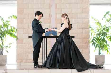 10年目の結婚式には思いの詰まったドレスを選ばれました。ご主人にもう染まり切っているから・・・という思いから、白のウェディングドレスではなく、ブラックドレスを選ばれた新婦様。実はブラックドレスには、「あなた以外には染まりません」・・・そんな素敵な意味が込められているんです。まさに結婚10周年のおふたりにふさわしい素敵なドレスを選ばれた花嫁様。素敵ですね。