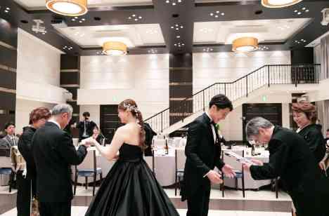 今までのこの先もずっとご縁が続くご親族様。そんな方々と会話やお食事を楽しむ為、高砂席は設けず同じテーブルを囲むことにされました。普段からお付き合いがある方達だからこそのエピソードが飛び出したり、自然と笑顔や会話が溢れる温かい時間となりました。キッズゲストも多く、退屈しないように、楽しめる工夫も。キッズゲストがたくさんの大人ゲストと交流が出来るようにとじゃんけんビンゴを企画されました。