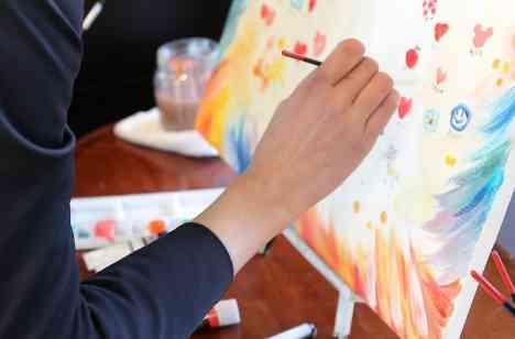 受付に真っ白なキャンバスを置き、ゲストの皆様に思い思いの色を使って彩りを加えて頂き、出来上がったキャンバスはおふたりのメインバックに飾りました。メインバックの中央にある真っ白な空間には、ゲストの皆様によって完成されたキャンバスが飾られ、みんなの手で作った暖かい空間が出来上がりました
