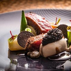 【贅沢なおもてなしの美味】ゲストをおもてなしする際の要となるお料理。ゲスト大満度の高い旬の京野菜&フレンチをお召し上がりください。当館の本格的な婚礼料理はミシュラン星獲得シェフによるプロデュース。