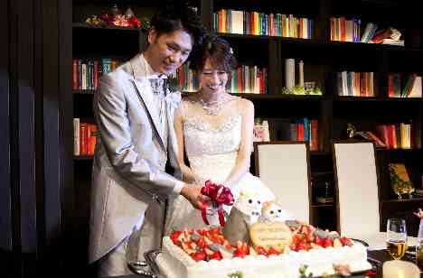 披露宴入場時 人気の演出ルスールカップでゲスト様をおもてなし そのあとには一緒に暮らしている2匹のネコちゃんのモチーフをケーキに乗せてご登場!! 大切な家族でもある2匹のネコちゃんに見守られて一日をすごされました