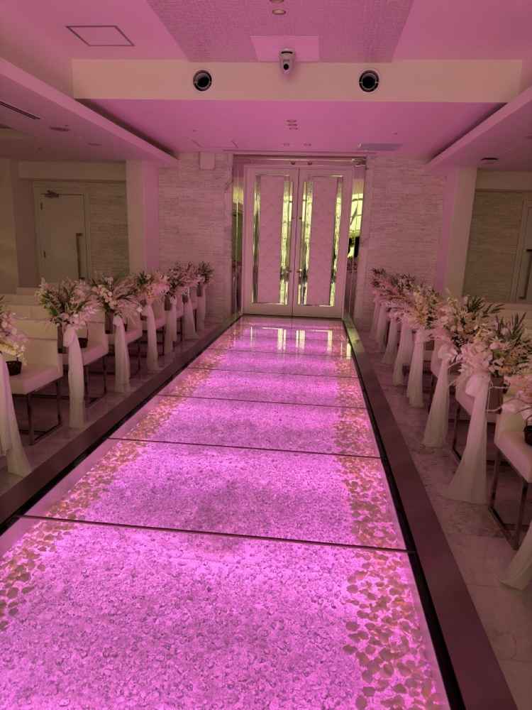 挙式会場はモダンで見たことのない演出も可能だった。披露宴会場はライティングやギミックに凝っていてワクワクした。