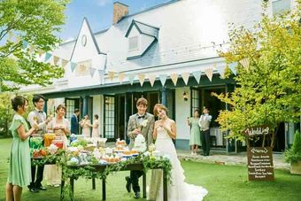 | 挙式スタイル | 緑溢れる庭付貸切邸宅でオーダーメイドの一日を! 遠方ゲストも嬉しい《新幹線米原駅から車で約5分》の同会場。庭付一軒家をふたりとゲストで貸切に。独立型チャペルには500年の時を経たステンドグラスが煌めく。ガーデンでは青空の下、憧れのガーデン式も叶う。 教会式¥162,000(チャペルorガーデン) 人前式¥129,600(チャペルorガーデン)・¥30,857(宴内) 神前式¥162,000 |