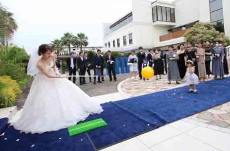 「チャペルの雰囲気や進行が、理想していたイメージにぴったりでした!」と笑顔のお二人。チャペルに暖かい光が差し込み、お子様のご参加、穏やかな雰囲気で挙式を執り行いました。ガーデンセレモニーでは、新郎様の趣味を取り入れ"ゴルフトス"を行いました。新婦様にとっては、初めてのゴルフ経験だったため「初心者には手加減が難しかった」と話されましたが、拝見したところすごくお上手なショットでした!