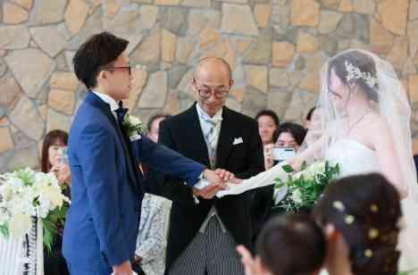 家族と仲が良く、大切に思われていたお二人は、挙式で感謝の気持ちを表現されました。新郎様は、亡くなられたお母様のご友人である”第二の母”にジャケットセレモニーをお願いされました。感謝を伝え、握手を交わされる姿が印象的です。新婦様は、お二人を繋いでくれたお母様からベールダウンを。思わず抱き合われる姿に、チャペル内が感動に包まれました。お天候にも恵まれ、光に包まれた暖かな挙式となりました。