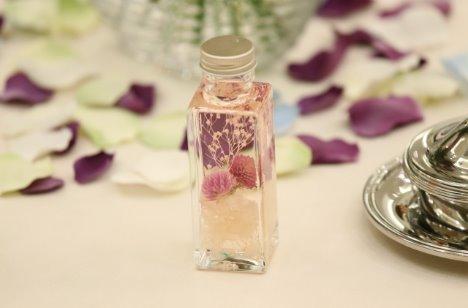 席次表や芳名帳など、手作りを意識しました。 ドライフラワーやプリザーブドフラワーが好きなので、髪飾りなどにも使用しました。 卓上の花は持って帰ってもらえるけど、枯れてしまうのが少し寂しかったので、 手作りのハーバリウムを置きました。