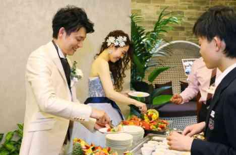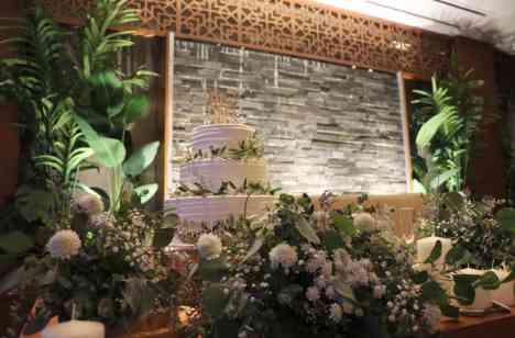 披露宴会場は、新婦様お好みの白とグリーン系でまとめるナチュラルテイスト。テーブルクロスやナフキン、装花、ブーケ、すべてがお手本のような仕上がりに。会場を見たお二人から「おぉ~!」「イメージ通りです!」というお言葉を頂いた時は、お二人のこだわりを叶えられたと、とても嬉しかったです。