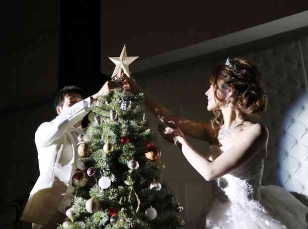 オリジナリティが欲しいお2人は、王道のケーキ入刀に代わる演出を希望。 受付でゲスト皆様の手により飾り付けせれたクリスマスツリーの最終仕上げをお二人に行っていただきました。お2人には、頂点に星の飾りをつけて頂くことで夫婦で行う初めての共同作業の意味を込めました。その星は甥っ子さんのサンタ・トナカイによりお届けされたことも癒し溢れるシーンとなり大成功でした!