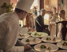 「料理も大切な演出の一つ」と創業の時ポリシーを守り、おふたりの思い出やゲストへの想いをシェフと直接じっくり話をし、シェフ自らが地元食材や季節の食材にこだわりこの日のこの場所でしか食べることができない美味しいメニューをご提供いたします。