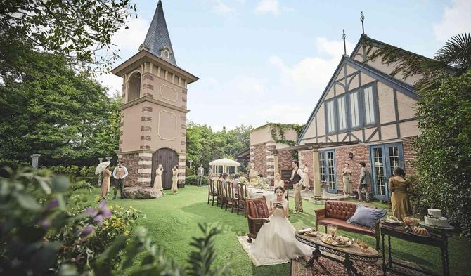 広大なガーデンと自由に行き来きできるパーティ会場。「ヨーロッパ貴族の別荘」を思わせる優雅で洗練された大邸宅へと生まれ変わります。階段入場はゲストのサプライズに。オープンキッチンも併設され、五感を使って美食を愉しむ事ができます。