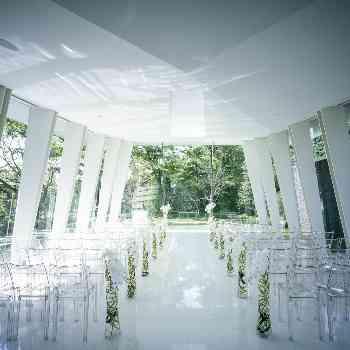 四季によって雰囲気を変える大自然の中に、まるで水面に浮いているよう設計されたこだわりのガラス張りチャペルで永遠を誓います。
