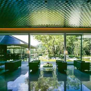 - 開放的なエントランスの先に広がるガーデンと、光あふれるラウンジで寛ぐひとときを。