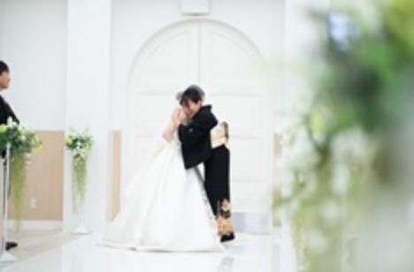 1月の冷たい風に吹かれながらも、新しい年の暖かな希望を感じる日。 挙式シーンでは今までの感謝の想いを乗せて親御様からのジャケットセレモニーとベールダウンセレモニーが行われます。純白の大聖堂の大きな扉前ではおふたりの最後の身支度として「今までありがとう。」と思わず言葉が溢れます。 言葉だけではないお母様からのあたたかなハグにゲストの皆様も涙がこぼれます。