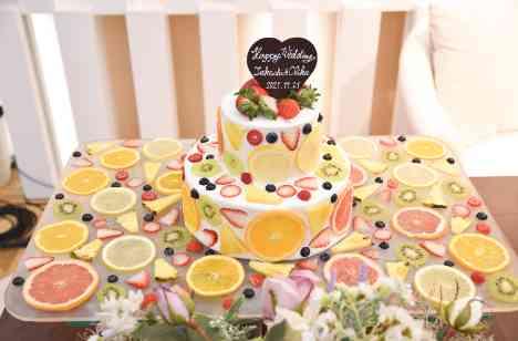 ゲストの皆さんが楽しんでいただけるようなアットホームなパーティになりました! ウェディングケーキもカラフルなフルーツで色鮮やかで かわいいケーキになりました。 2人の生い立ちムービーの上映や、カラードレスへのお色直しなどの演出など楽しいことがいっぱい♪ ゲストの方との写真タイムもゆっくり撮っていただきました。