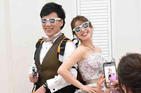 親しいご友人のみをご招待されたお披露目パーティでも ゲストの方と一緒に楽しめる内容が盛りだくさんでした。 入場演出ではビールサーブで各テーブルを回りました。 また、キャンドルリレー演出で幻想的な雰囲気にも! テーブルの代表者がお隣のテーブルの方へ火を灯し、 ゲストの皆様と一斉に吹き消します。 アットホームで笑顔あふれるパーティでした。