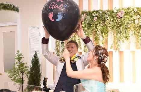 披露宴でのファーストバイトは一般的によくある演出なので実施を悩みましたが、外せない演出だと思ったので、趣味である釣りを活かし「釣り竿バイト」を行ないました。みんなが楽しんでくれて良かったです。またお腹の子の性別が分かった時期だったので、ジェンダーリビング演出で性別発表を行ないました。両親や友人の喜ぶ顔がリアルタイムで見れて、やってよかったと思いました。