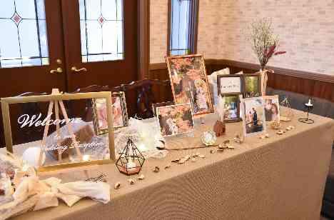 お仕事との両立や、新生活準備など、大きなイベントがたくさん重なってしまったこともあり、思っているようにご結婚式準備のお時間を取れなかったとのことでしたが、受付コーナーは流行のドライフラワーや、韓国系アイテムが並ぶ大変お洒落な空間に仕上げてくださいました。ご親族に向けてのご結婚式だからこそ、ゲストの皆様はこれまでのお二人の歩みを知りたいものですので、ツーショット写真などは大変GOODなアイテムです♪