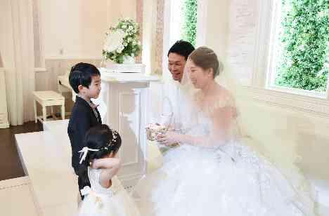 リングキッズを務めてくれたのは新婦様の甥っ子くん、姪っ子ちゃんのおふたり♪リハーサルの時から、頼りがいのあるご兄妹で安心して見ていることができました。お兄ちゃんの方は、リングキッズの適齢期程度のご年齢(6歳)でしたので、ママやパパのサポートなくても、立派に妹様を連れて役目を果たしてくれました!ご協力ありがとうございました♪
