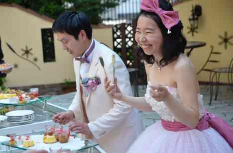 お子様から大人の方まで皆様にお楽しみいただけるようたくさん工夫をされました。デザートビュッフェではご新郎ご新婦様がお越し頂いたゲストの皆様お一人お一人に感謝の気持ちを込めて直接デザートをサーブされました。