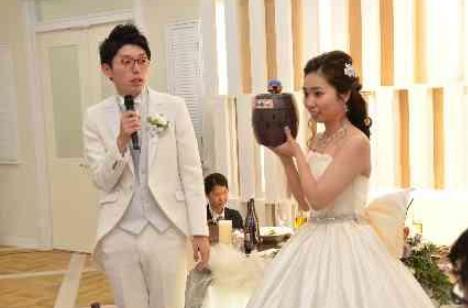 ゲストにおもてなしと感謝の気持ちを込めてお二人から2種類の楽しいゲームをご用意されました。1つはお二人のご出身地距離クイズ!考え始めると悩んでしまう絶妙に難しい問題に皆様とても悩まれている様子でしたが、正解に最も近い方がなんと5名もいらっしゃいました!2つ目は黒髭危機一髪ゲーム。こちらは人形が飛び出したら勝利!どちらのゲームもお盛り上がりでした。