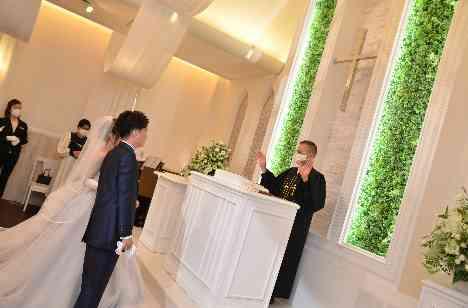 チャペル内では全員マスク着用、牧師さんにはフェイスシールドも着用して頂きその他の対策もバッチリの状態でした。今までにない珍しい状況でしたが、当日の様子はたくさんの写真に収めいつまでも思い出深い日となりました。ゲストの皆様も対策には快くご協力頂き本当に感謝しています。
