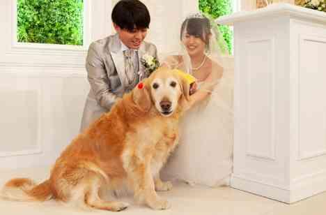 ペットウェディングといえば小型種のわんちゃんのイメージが多いかと思いますが、ゴールデンレトリーバーのような大きなワンちゃんも大歓迎♪実はチャペルの聖壇では、二人がジャーキーでワンちゃんを「こっちだよ~~!」と誘導中☆ゲストのみんなも自由なわんちゃんの行動に微笑ましいアットホームな結婚式になりました。