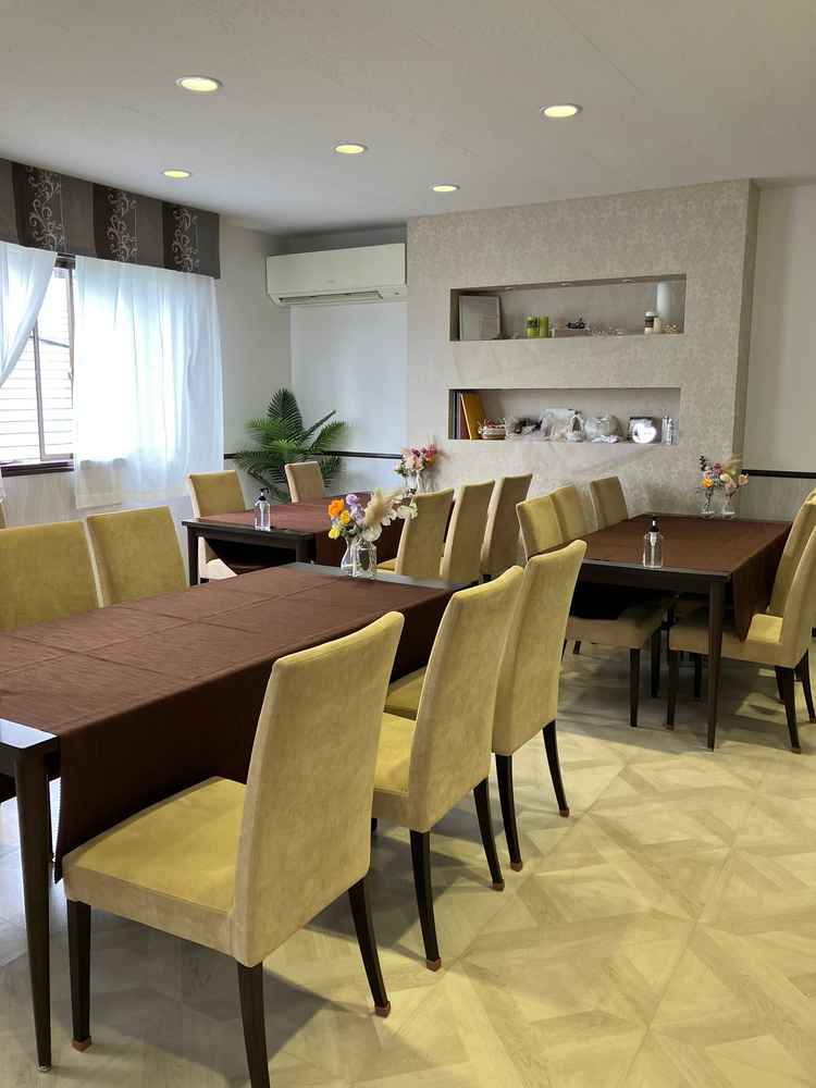 少人数用の式場なため、よくいえばアットホームな印象ですが、すこし手狭な印象だった。待合スペースも家みたい