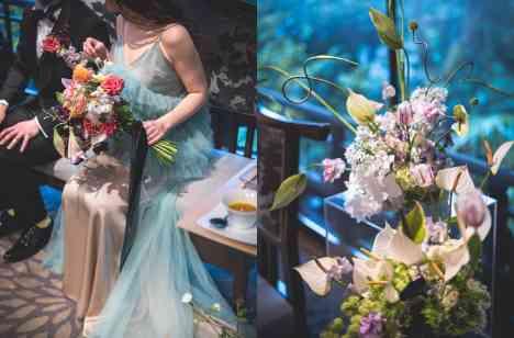 お色直しでは、鮮やかなブルーのドレスにダウンヘアで登場された新婦様。ゲストからは「可愛い」と歓声が上がっていました。ゲスト一人一人との繋がりを大切にされるおふたりが設けたのは、自由な歓談の時間。あちらこちらで記念写真が撮られ、会場は笑顔とリラックスした空気に包まれていきました。パーティの結びには「ワンモアチアーズ」で乾杯。心通わせる、かけがえのない瞬間が、この日の最高の宝物となりました。