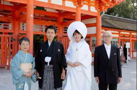 新婦様の憧れであった神社での和婚式と、おふたりの新居のご予定地である京都から、下鴨神社をお選びくださいました。世界遺産に登録されている格式高い朱色塗りの神社と、おふたりの白無垢・紋付袴姿が非常に映える挙式に。