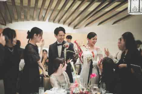 おふたりが最も大切にされたのは、ゲストとの会話。料理や酒を心ゆくまで愉しんでほしいという想いから、歓談の時間をゆったりと計画。「これからもよろしく」と思いを交わす温かな空間となりました。アクセントは「おふたりクイズ」。受付で回答を募り、披露宴で正解発表。会場には自然と笑顔が広がり、ゲスト同士の会話も弾みます。芯ある美しさと遊び心が共鳴した一日は、おふたりにとって「凛と、煌めく」思い出となりました。