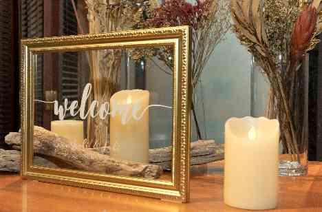 オシャレで、ビジュアル面に強いこだわりをお持ちの新婦さま。シンプルなイメージをベースに“大人モダン”な雰囲気の会場コーディネートをご希望でした。メインテーブルはグリーンやシルバートーンの装花で、ゲストテーブルは丸太の上にグリーンやキャンドルを置き、少し幻想的な世界を演出。ドライフラワーやLEDキャンドルなどを配されたウェルカムスペースも含め、会場全体をトータルでコーディネートしてくださいました。
