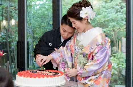 披露宴では色打掛にお召し替え。最初の演出は和の雰囲気にぴったりのだるまケーキに目入れを。サプライズで新郎様新婦様のお母様をお呼びし、ラストバイトをしていただきました。また、新婦様のお母様手作りのウェディング宝くじを演出として行いました。デザインには前撮りの際のお写真を用いられ、ゲストの皆様もそれぞれのデザインを楽しそうにご覧いただきながらも、いざ正解発表の時には会場内は非常に盛り上がりました!