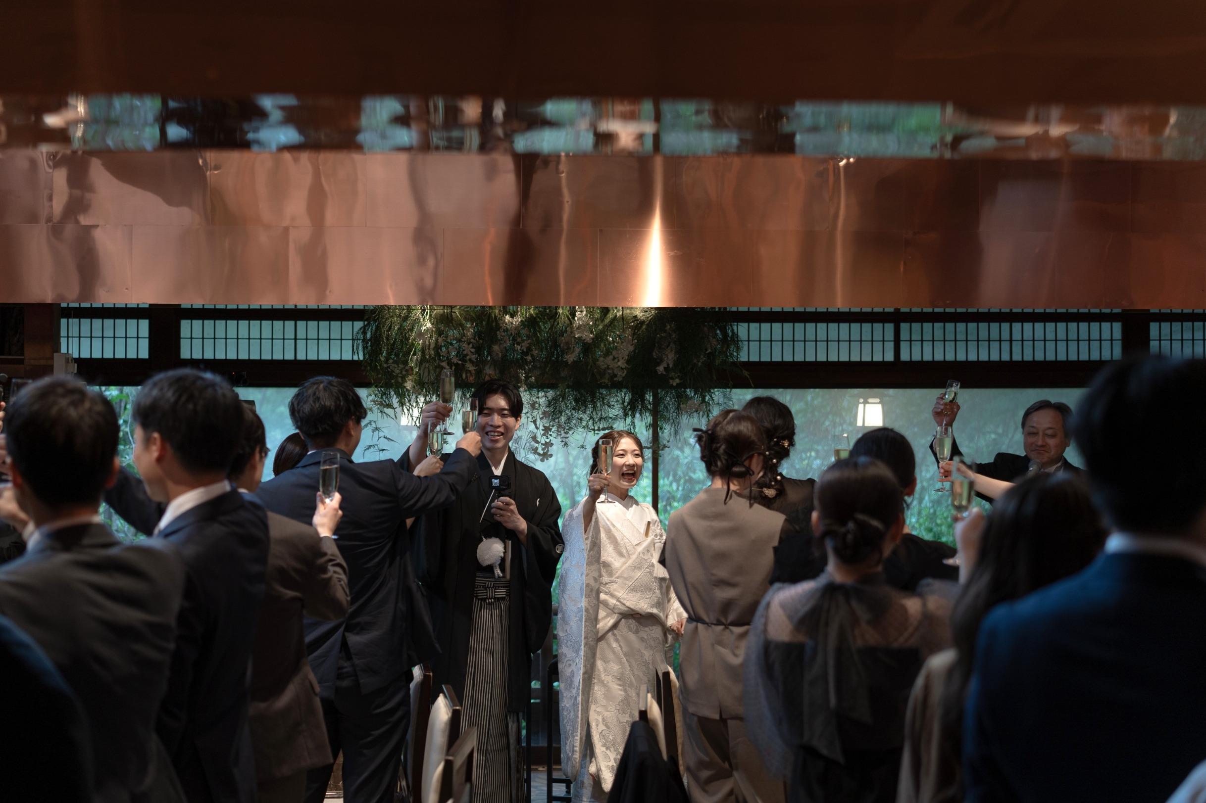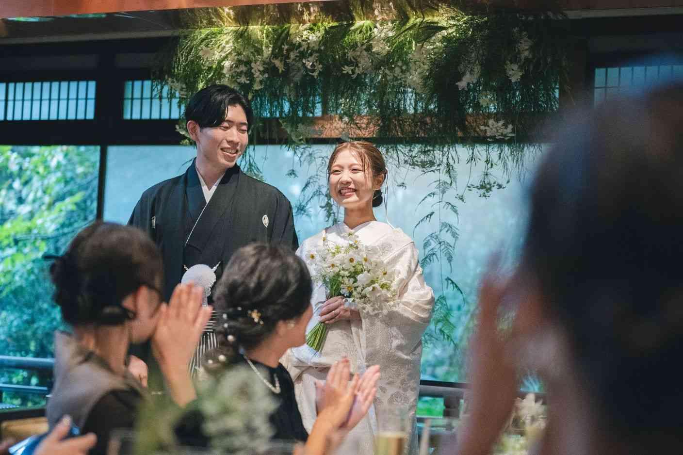 和装でも演出も人気。ゲストの皆様へ京都らしいおもてなしをしたいおふたりにおすすめです。